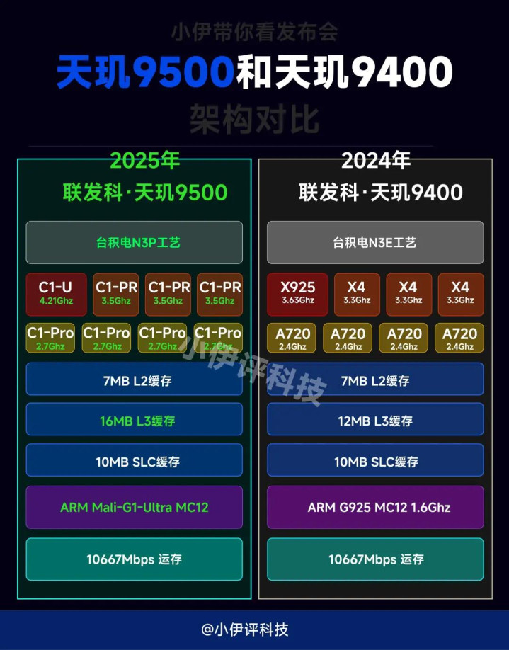 当然了,你也甭指望这一代天玑9500能够拥有上一代天玑9400那般强悍的性能提升幅度,这一代更多的是小改换代。